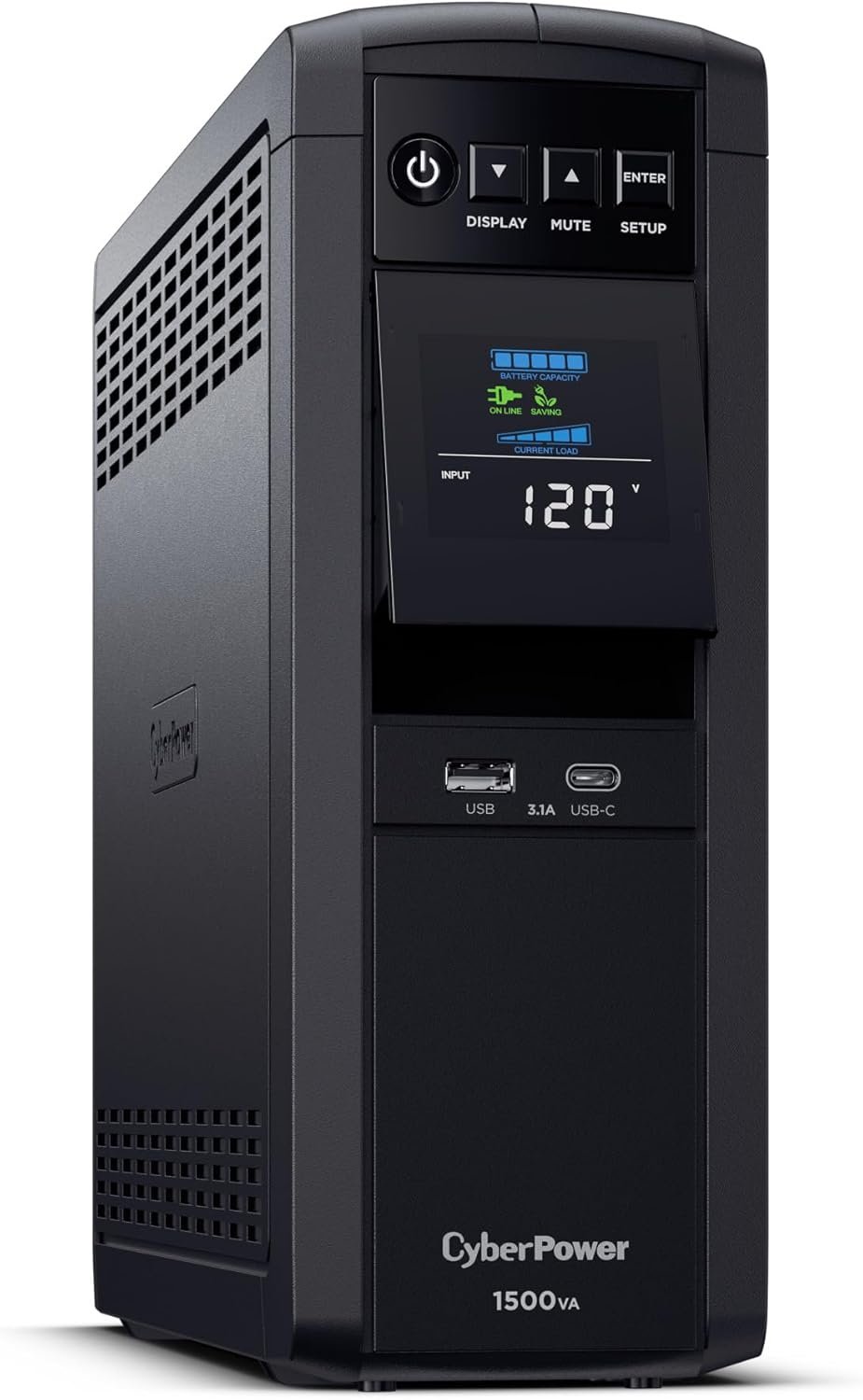 CyberPower CP1500PFCLCD PFC Sinewave UPS Battery Backup and Surge Protector, 1500VA/1000W, 12 Outlets, AVR, Mini Tower, UL Certified